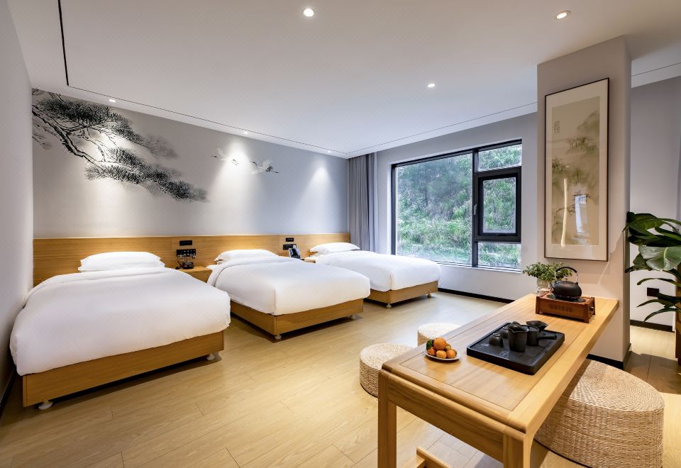 菩提·禅意茶韵山景三人房 【全屋智能+深睡床垫+贡缎床品+2米品茗桌+私房茶+解压筋膜枪】
