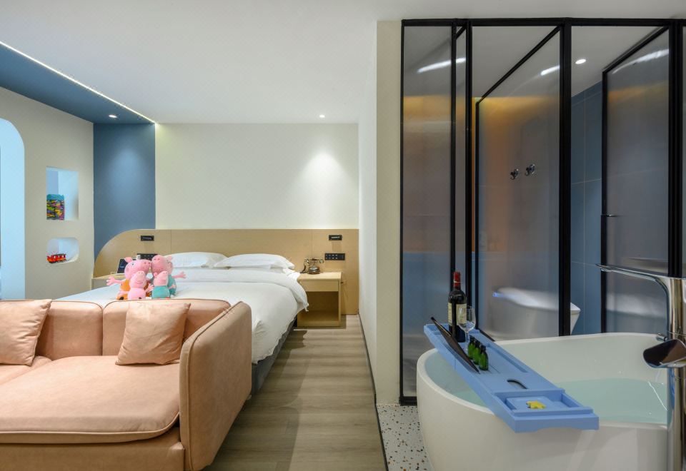 山泉·温馨度假浴缸房【全屋智能+深睡床垫+贡缎床品+精油泡泡浴+一次性浴缸套+解压筋膜枪】