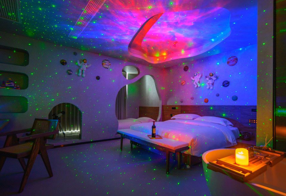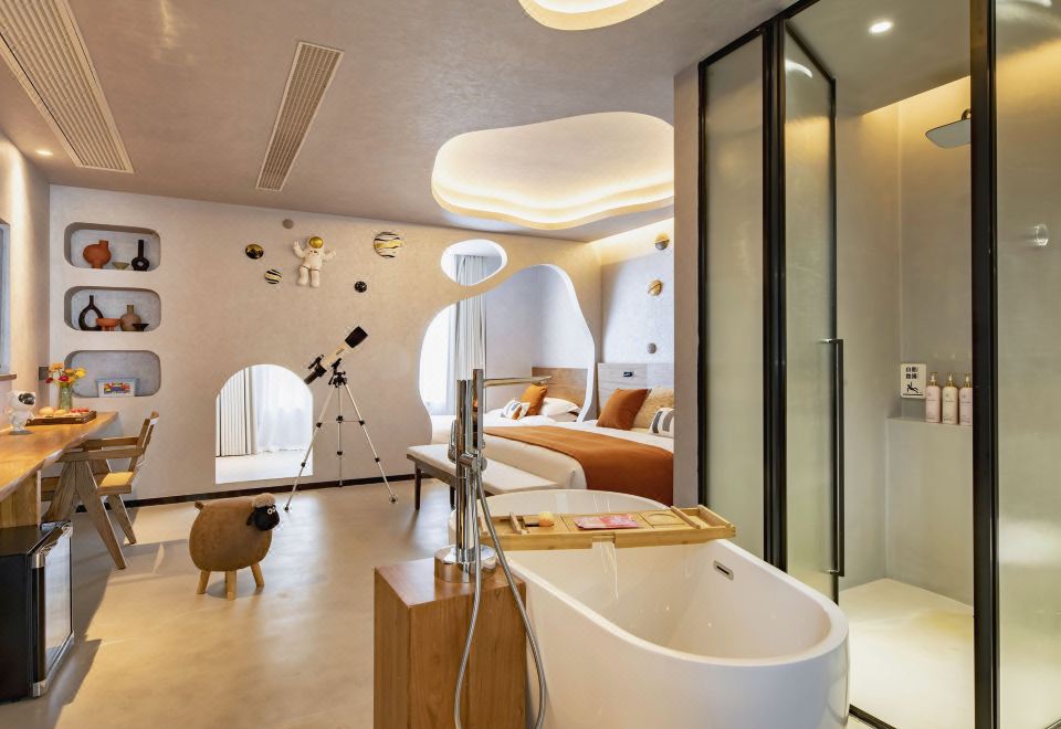 山泉·梦幻宇航浴缸房【全屋智能+深睡床垫+贡缎床品+精油泡泡浴+一次性浴缸套+解压筋膜枪】